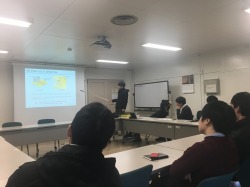 ![]() 輪講の様子 ![]() 実験設備 ![]() みんなでお食事 |